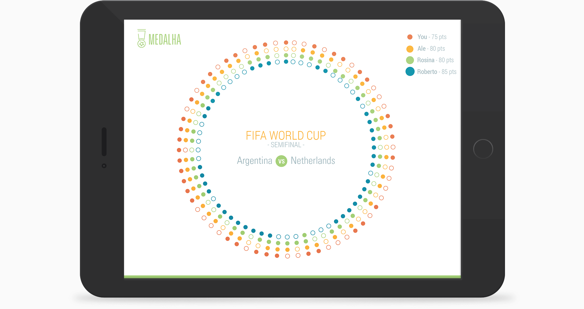 I decided to design some mobile screens around this visualization. The idea of an app that would allow users to vote for who they think will be the match’s winner and view the results of their predictions against other users.